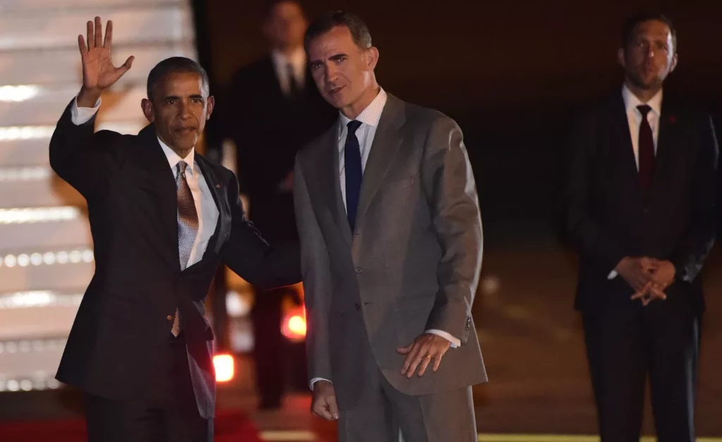 Además de por el Rey, Obama ha sido recibido a pie de escalerilla por la vicepresidenta del Gobierno en funciones, Soraya Sáenz de Santamaría; el embajador de España en Estados Unidos, Ramón Gil Casares; el embajador estadounidense en España, James Costos, y el secretario de Estado de Asuntos Exteriores, Ignacio Ybáñez, entre otros. Felipe VI y Obama han intercambiado saludos a pie de pista, donde se había extendido una alfombra roja, y luego el presidente estadounidense ha saludado a Sáenz de Santamaría y a otros de los asistentes.