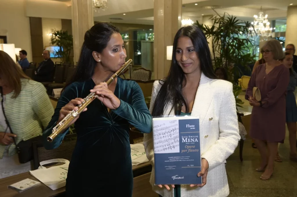 Santo Domingo.– En un acto cargado de emoción, historia y música, la soprano dominicana Nathalie Peña Comas, presidenta de la Fundación Musical Trébol, presentó el libro de partituras Obras para Flauta del maestro Luis Emilio Mena, considerado uno de los pilares de la música académica dominicana.