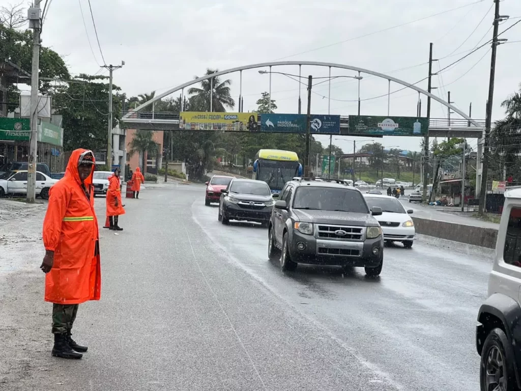 El ministro Deligne Ascensión supervisó los trabajos de desagüe, por lo que, la circulación hacia Santo Domingo es normal.