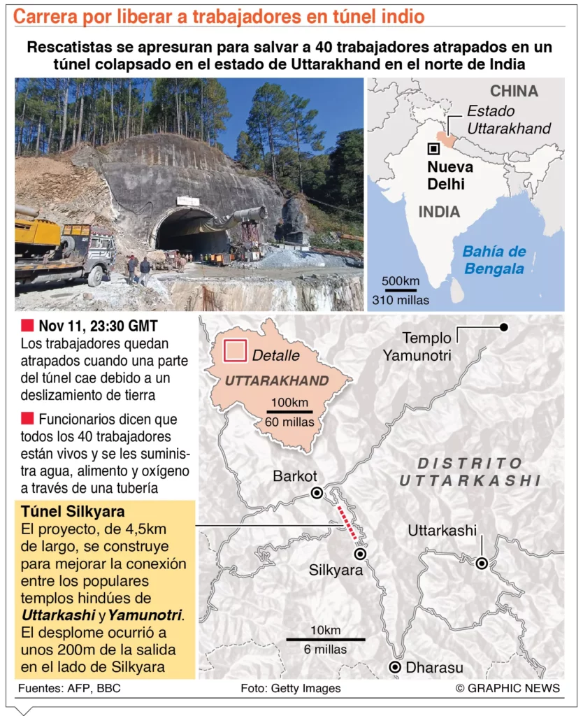 El accidente tuvo lugar en la madrugada del domingo, cuando un derrumbe dejó a cuarenta trabajadores atrapados en el interior de un túnel ubicado en el estado norteño de Uttarakhand.