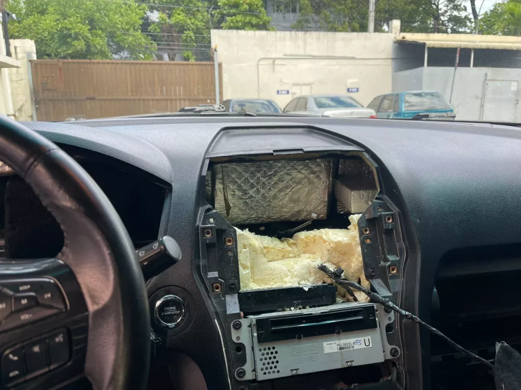 Tras ser detenido en el puesto de chequeo militar Santa Elena, ubicado en dicha provincia, el raso Roydel Alexander Medina Báez, fue entregado a agentes de la DNCD, quienes realizaron una segunda requisa y encontrando la mayor parte del alijo oculto en el tablero dela jeepeta Ford Explorer, color gris, sin placa.