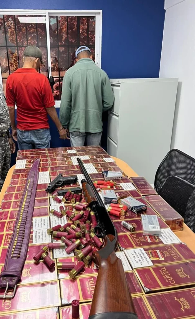 Durante el allanamiento también fueron ocupadas dos armas de fuego: una escopeta de cañón largo con 50 cartuchos y una pistola marca Glock con 45 cápsulas, ambas registradas a nombre del detenido.