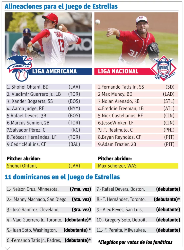 Un All-Star por primera vez, Ohtani lidera las mayores con 33 jonrones y también tiene marca de 4-1 con efectividad de 3.49 en 13 aperturas para los Angels. Además de comenzar en el montículo, Ohtani permanecerá en el juego como el bateador designado de la Liga Americana.