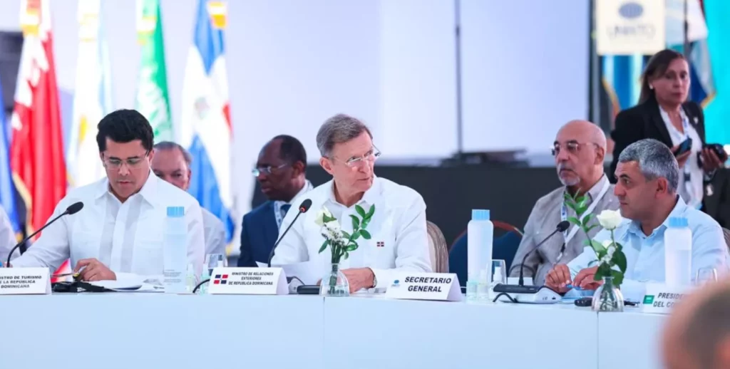 Collado y Álvarez hablaron durante su discurso la 18va reunión del Consejo Ejecutivo de la Organización Mundial de Turismo donde se encuentran 19 ministros de 38 naciones presentes, entre ellos los 35 países miembros y 3 observadores, así como unos 200 delegados.
