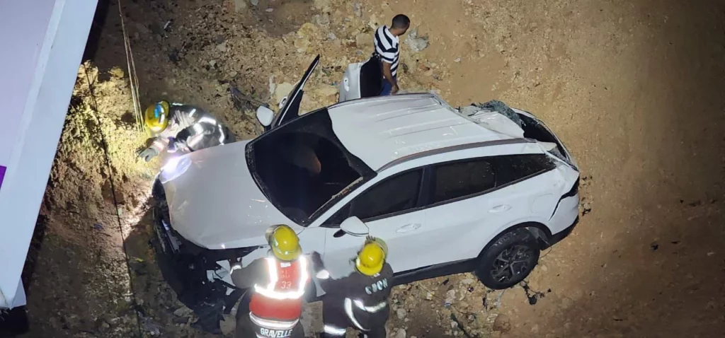 Santo Domingo.- Otra jeepeta cayó la madrugada de este jueves al hoyo de una construcción ubicada en la avenida Anacaona, esquina Hatuey, en el Distrito Nacional, la mujer que conducía el vehículo blanco fue rescatada ilesa por el Cuerpo de Bomberos y miembros del Sistema de Emergencias 9-1-1.