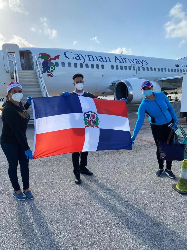 Miguel Vargas indicó que 53 connacionales (29 mujeres y 24 hombres) llegaron desde Gran Caimán -territorio británico en el Caribe- a las 11: 00 a. m. El arribo se produjo por el Aeropuerto Internacional Doctor Joaquín Balaguer (La Isabela o Higüero), en un vuelo de la aerolínea Cayman Airways.