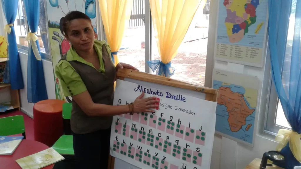 "Este es un sistema que parte de seis puntos con los que escribimos todas las letras y todas sus combinaciones, un sistema que fue inventado por Luis Braile quién se accidentó y se quedó ciego", explicó.