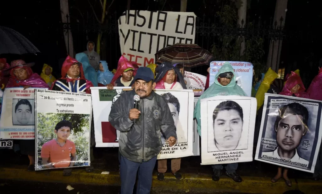 Durante el mitin los activistas y familiares gritaban consignas como “vivos se los llevaron, vivos los queremos”.