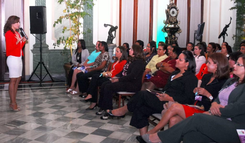 El Salón Verde, con su estilo Luis XV y preparado para recibir a “personalidades de especial distinción”, fue el escenario para que las madres del Palacio Nacional (exceptuando las que trabajan en DICOM), escucharan la charla motivacional “Como ser Madre sin dejar de ser Mujer”, impartida por Yadhira Pimentel de Madre S. O.S.