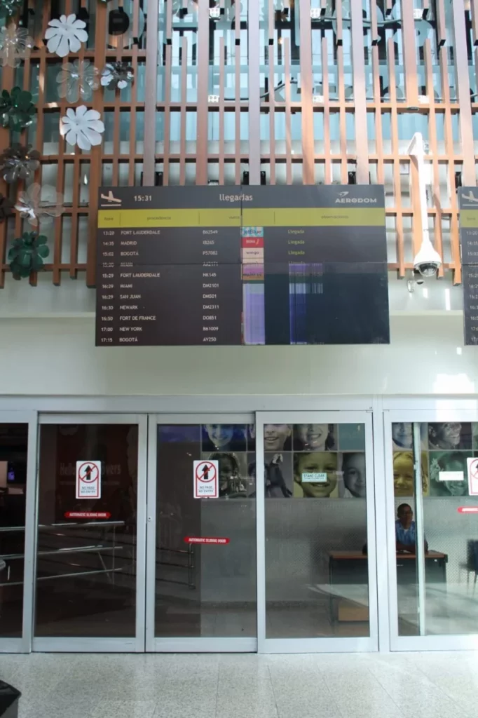 AEROPUERTO LAS AMERICAS.-Pasajeros y visitantes que acuden al Aeropuerto Internacional de Las Américas (AILA) en busca de familiares que llegan del exterior denunciaron que una de las dos pantallas que muestran los vuelos de llegada se encuentra dañada, sin que hasta el momento haya sido reparada por Aeropuertos Dominicanos Siglo XXI (AERODOM).