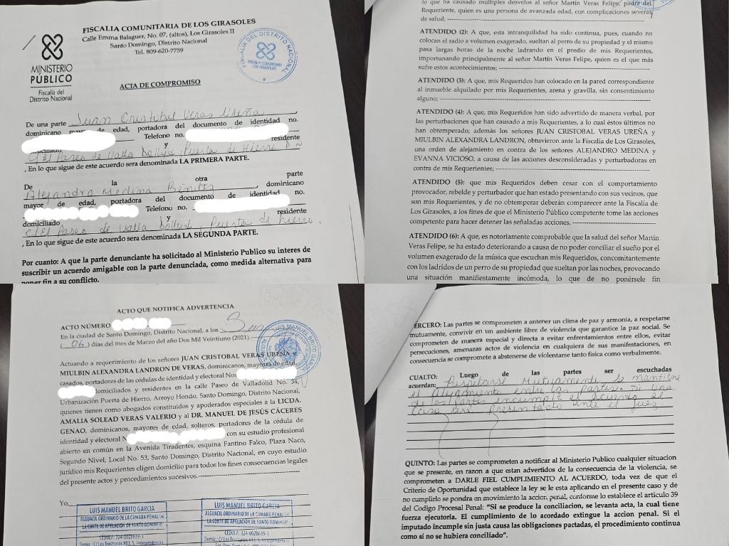 “Nunca han cumplido el mutuo acuerdo que fue lo que determinó la fiscal en ese momento”, comenta desde el desespero Alexandra Landrón. De acuerdo con su versión, una de las medidas estipuladas en el acuerdo —y que no ha sido cumplida— era la colocación del zafacón de basura de los Veras Landrón, quienes ahora recurren a colocar las bolsas de desechos sólidos en el suelo, cerca de la pared que divide ambas casas.