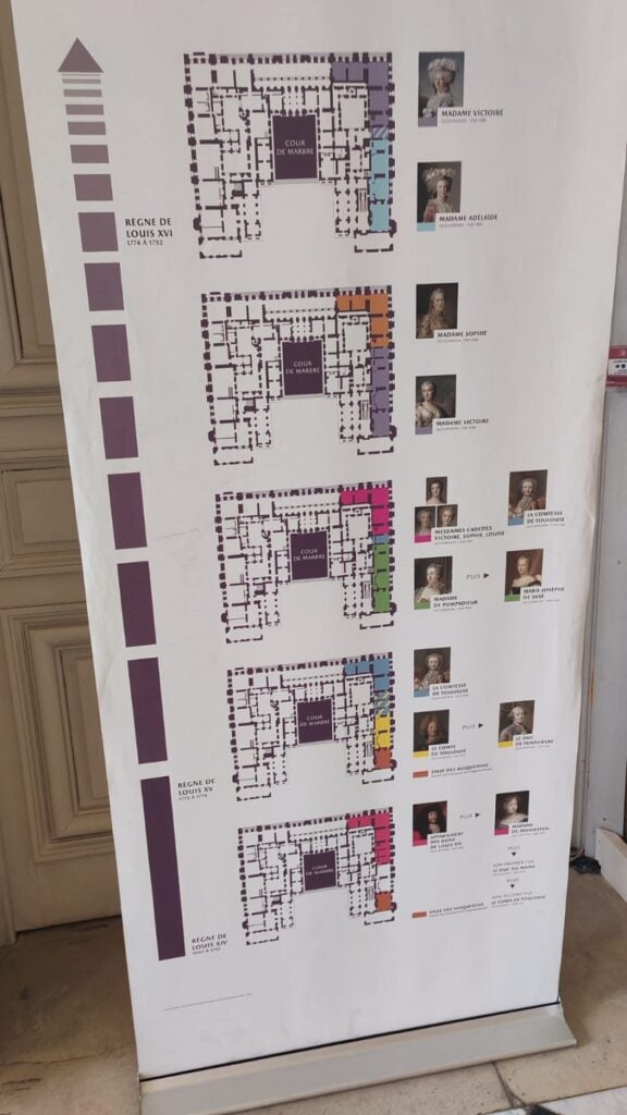 Asimismo, se puede recordar la historia en la habitación 401, la primera antecámara de Madame Victoria, la cual era la más accesible y funcionaba como sala de espera para los visitantes, o la biblioteca, y observar cada detalle y arquitectura en las salas de las demás hijas.