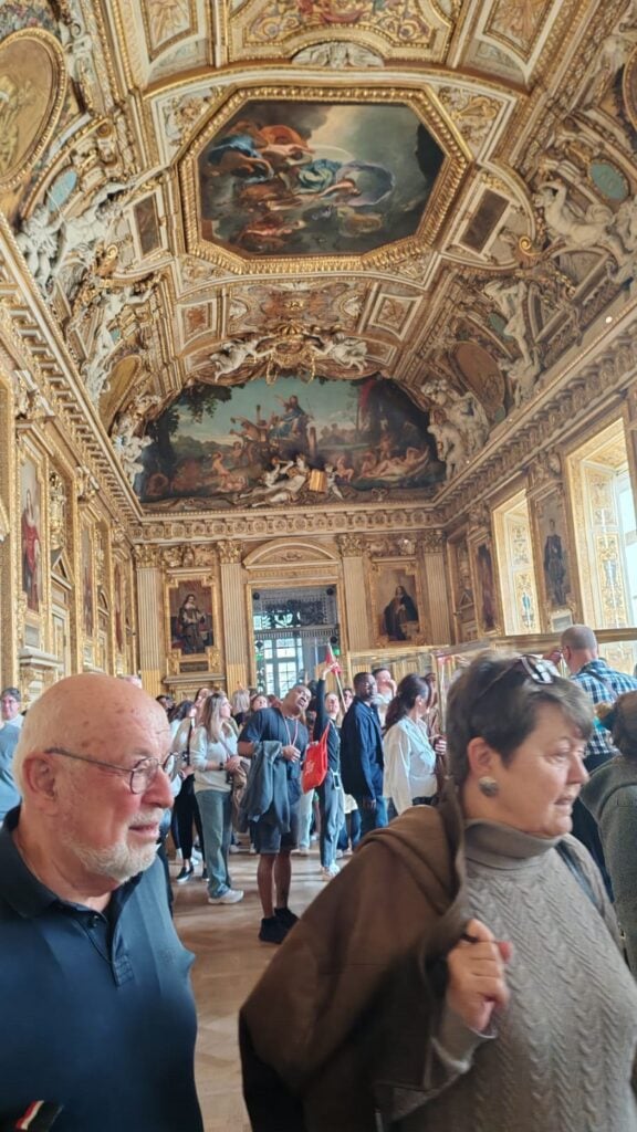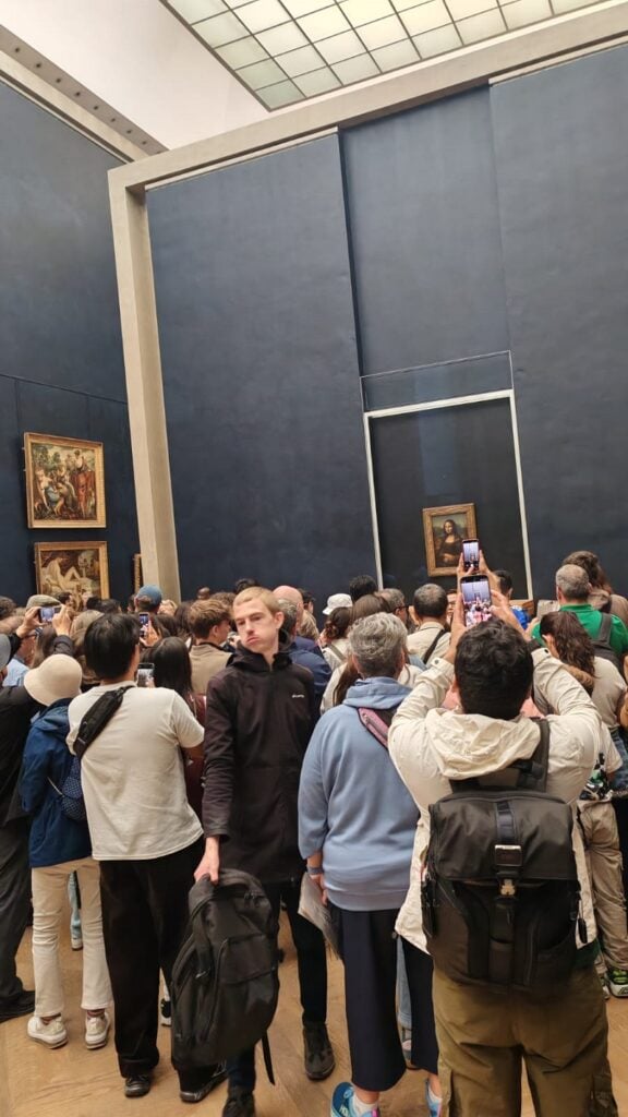 Allí, las largas filas no detienen a los amantes del arte, quienes pasan largas horas esperando para observar obras como la Mona Lisa que de hecho la mayoría de los visitantes dirigen su visita directo al sala 771 pero en el trayecto puede disfrutar de diversas obras como en las aposentos de Napoleón obras de Las bodas de Caná, La Victoria de Samotracia , La Venus de Milo y la aposentos de Napoleon III , quien fue el último monarca entre el 1852 y 1870, en esta sala poseen lámparas de enorme tamaños, y piedras preciosas.