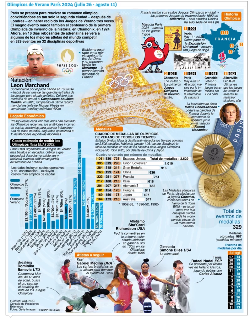 Francia.-París está ya totalmente blindada para la gran ceremonia de apertura de los Juegos Olímpicos, que este viernes reunirá a unos 328,000 espectadores y un centenar de gobernantes o responsables de organizaciones internacionales.