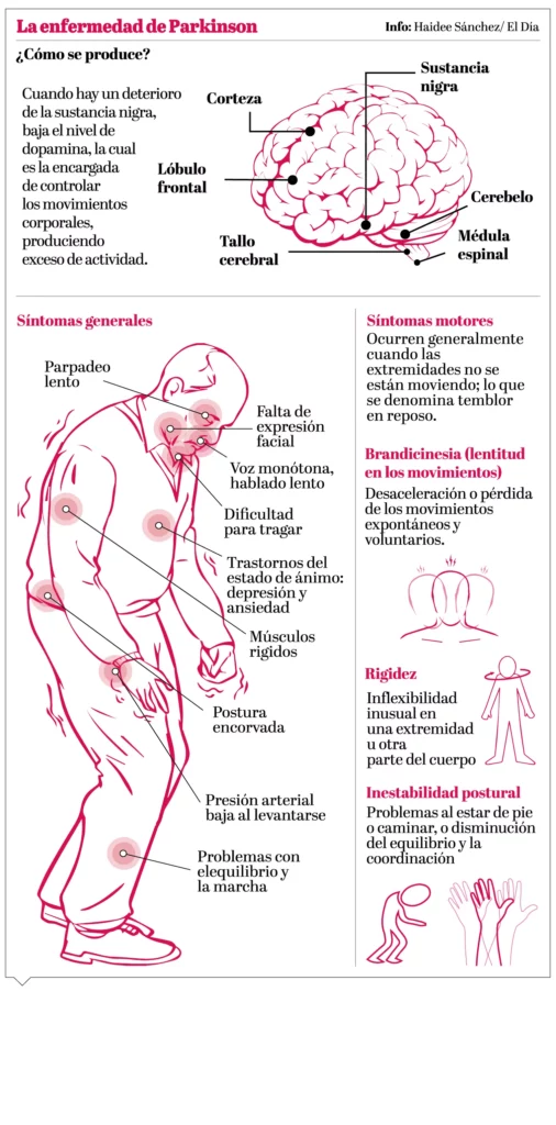 Esta enfermedad ocurre por la pérdida irreversible de células dopaminérgicas en la sustancia Nigra, las cuales, explica De Peña, son las encargadas de la modulación del movimiento. Dicha enfermedad es crónica y de curso progresivo.