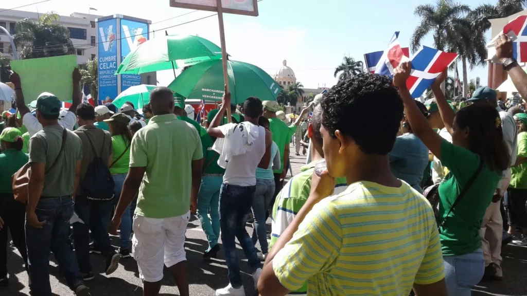 SANTO DOMINGO.- Manifestantes que participan en la marcha contra la impunidad se congregaron esta mañana en las inmediaciones del Palacio Presidencial.