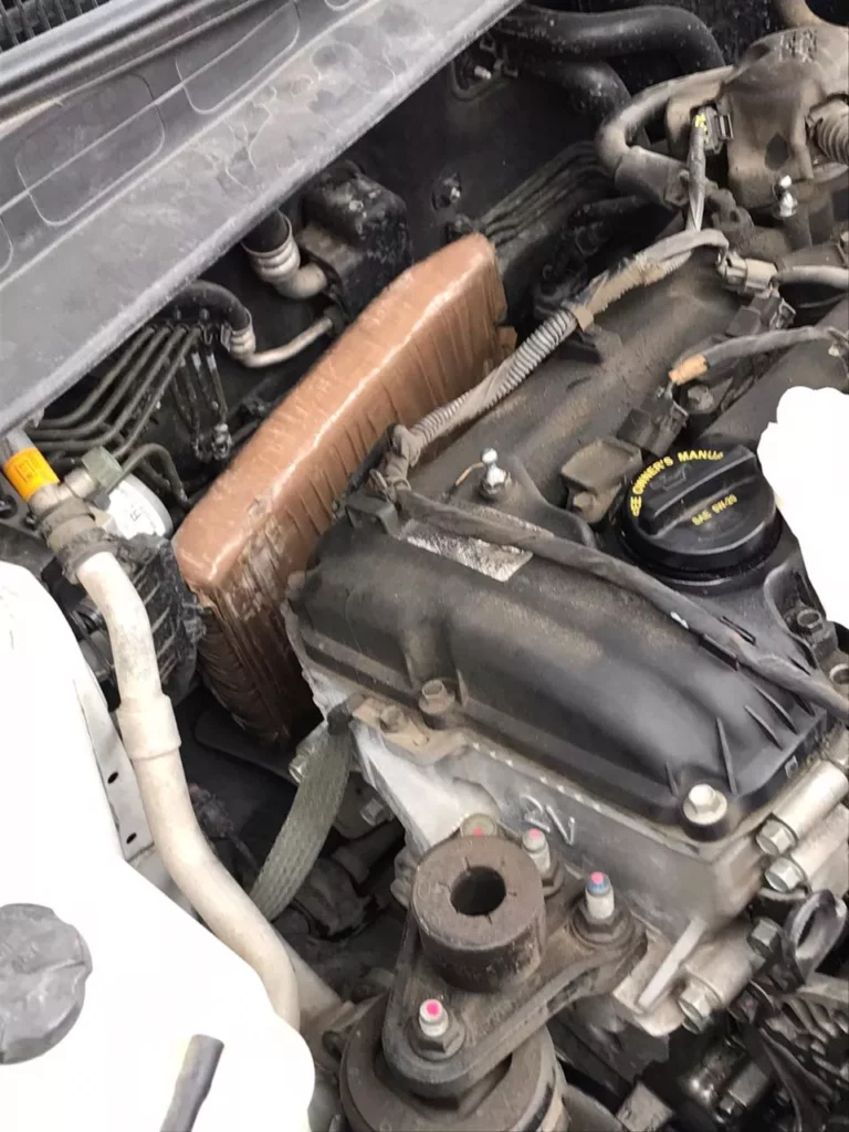 El Mopc indicó que desde donde ocurrió la avería el vehículo fue llevado en una grúa al centro de operaciones de la asistencia vial en Piedra Blanca, Bonao, y cuando levantaron el bonete se encontraron con la sorpresa de que un paquete de un vegetal verde, presumiblemente Marihuana, estaba incrustado en el área del motor.