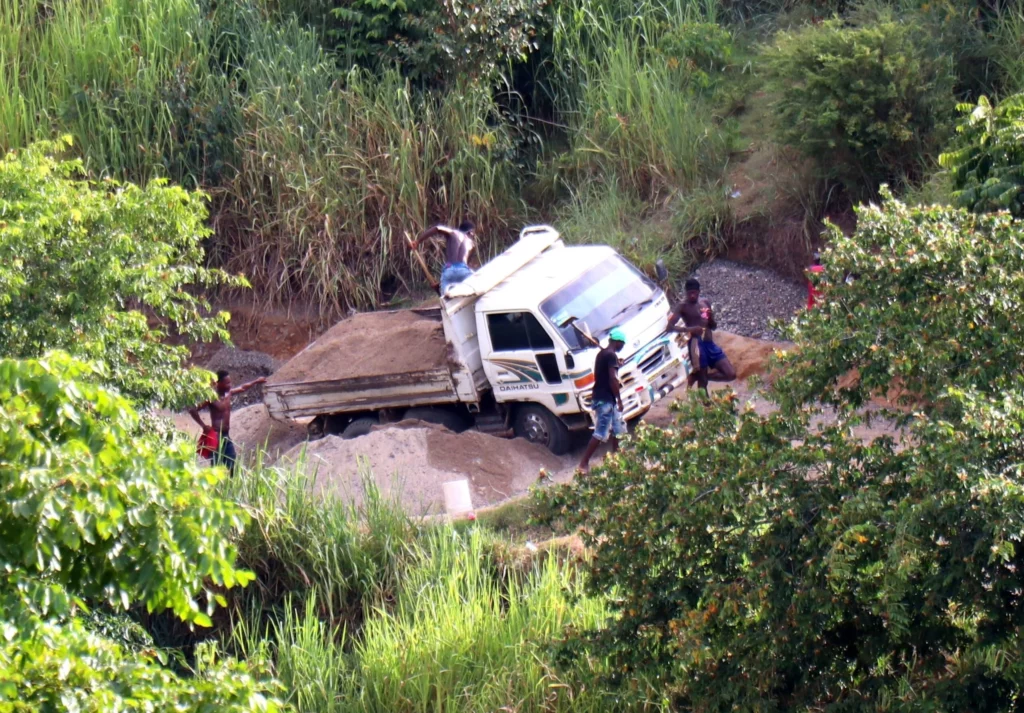 Cada semana, haitianos cargan más de 30 camiones marca Daihatsu con arena del río. Ante la creciente demanda, han comenzado a usar camiones de carga con tres ejes para transportar el material, según informó una fuente militar a este diario.