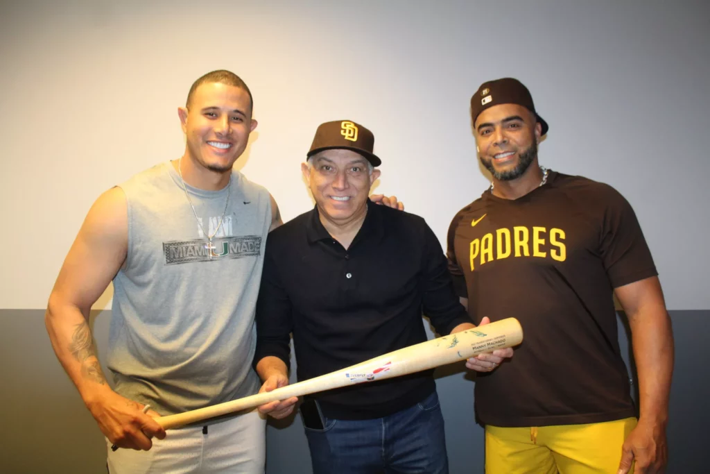 De gala y manteles largos estuvieron los peloteros dominicanos de los Padres de San Diego, Nelson Cruz, Juan Soto y Manny Machado, tras recibir y darle las bienvenidas en el clubhouse, al eminente deportista quisqueyano, doctor Ramón Tallaj, presidente de SOMOS Community Care.