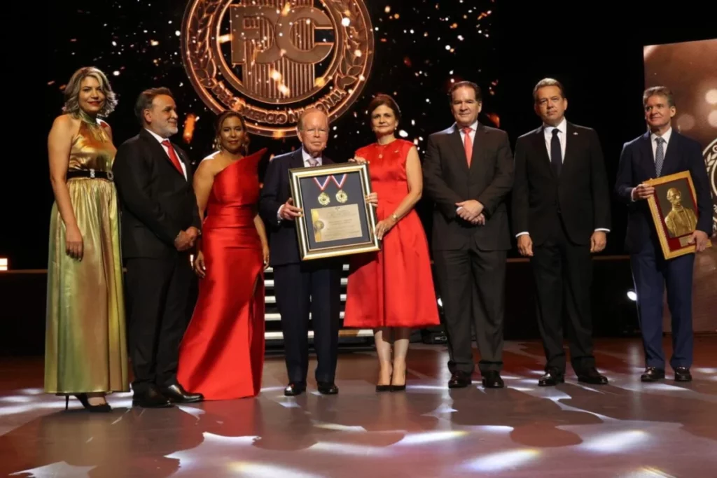Santo Domingo. -Durante una ceremonia que reunió a representantes de los distintos rubros del sector comercial dominicano, el empresario José Luis Corripio Estrada (Pepín) recibió la Gran Medalla al Compromiso y la Excelencia de la Federación Dominicana de Comerciantes (FDC), en un acto que contó con la presencia de la vicepresidenta Raquel Peña.