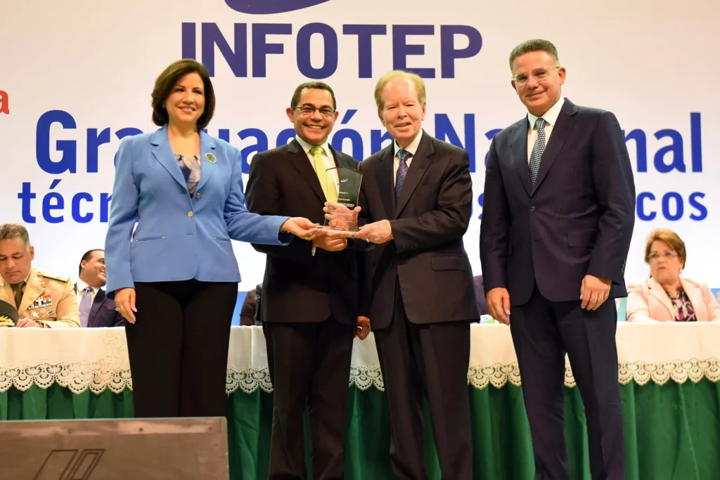 El reconocimiento fue entregado a Corripio por la vicepresidenta Margarita Cedeño de Fernández, el director del INFOTEP, Rafael Ovalles, y el presidente del Consejo Nacional de la Empresa Privada, Pedro Brache.