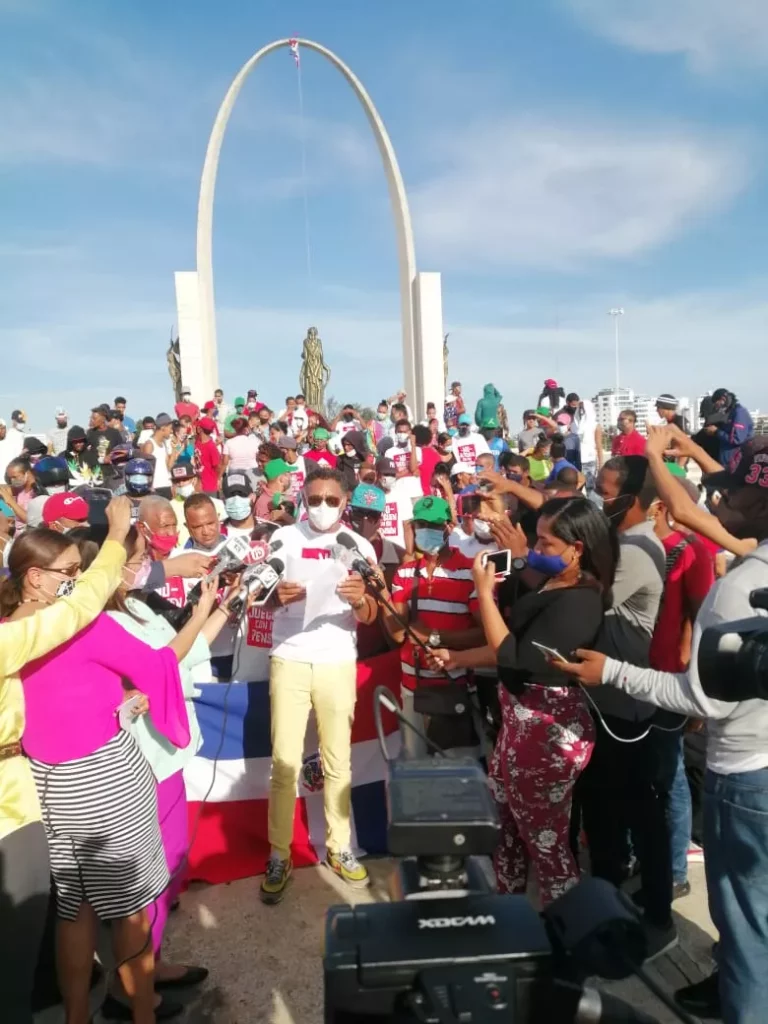 SANTO DOMINGO.- El movimiento de Los Peregrinos de Moca realizó una manifestación en la Plaza de la Bandera para advertir el peligro de que el país sea sumido en un descalabro económico y social como el que se provocaría si es aprobado el proyecto de ley mediante el cual se pretende entregar el 30 por ciento de los Fondos de Pensiones a los trabajadores suspendidos por efectos de la pandemia.