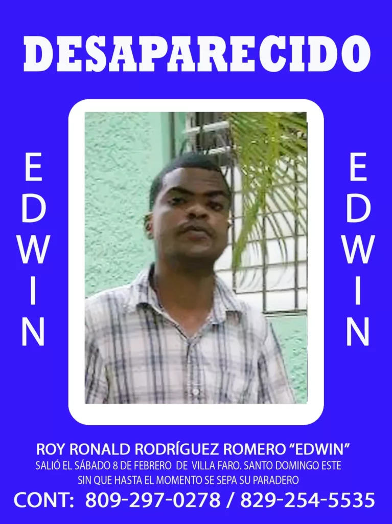 Santo Domingo Este.-Está desaparecido desde hace seis días el joven Roy Ronald Rodríguez Romero (Edwin), de 21 años, residente en el sector de Villa Faro, Santo Domingo Este.