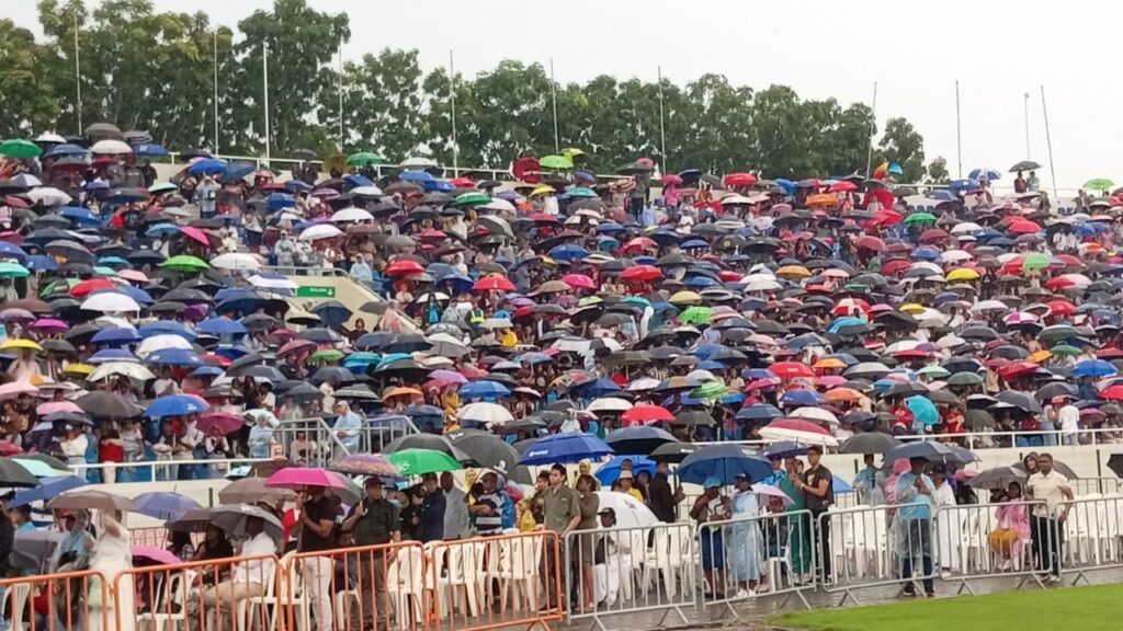 Aun bajo una lluvia y con alertas meteorológicas vigentes por la incidencia de una vaguada en gran parte del territorio nacional, la Batalla de la Fe ha logrado congregar prácticamente el cien por ciento del público previsto, e incluso un poco más.