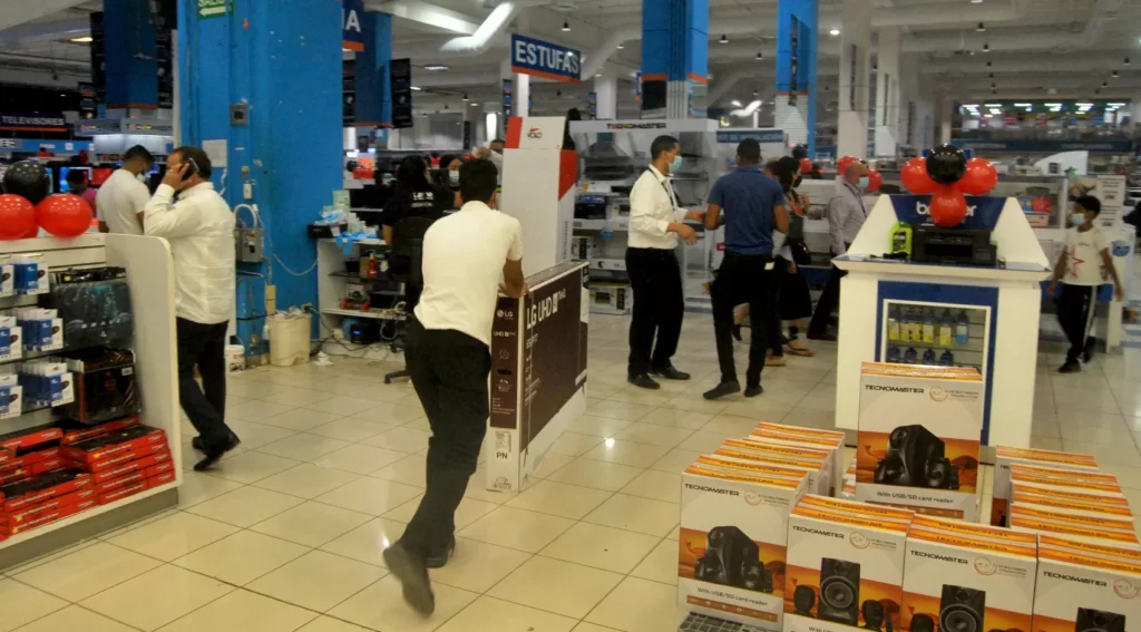En un recorrido anoche por diferentes tiendas de la ciudad, como Plaza Lama, La Sirena y Distribuidora Corripio, era notoria la cantidad de personas adquiriendo artículos, en su mayoría electrodomésticos, y aprovechando los financiamientos que ofrecen las distintas cadenas financieras del país.
