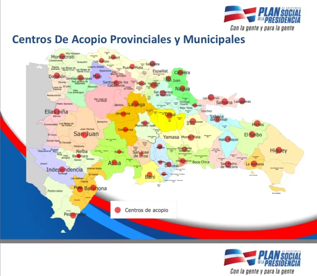 SANTO DOMINGO.- La directora del Plan de Asistencia Social de la Presidencia, Iris Guaba, instruyó la creación de 57 centros de acopio a nivel nacional, para hacer frente a las inundaciones que pudiera provocar el paso del huracán María por territorio dominicano, garantizando así la asistencia para las familias afectadas.