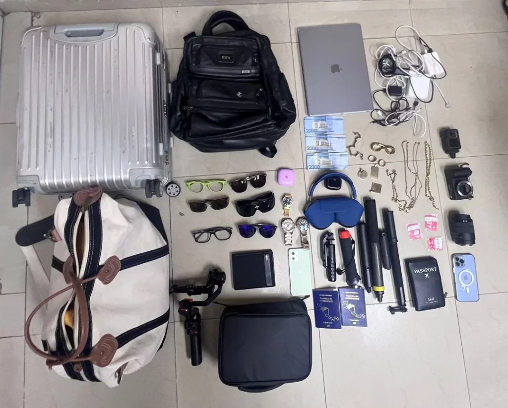 Durante el arresto, al detenido se le ocupó una mochila que contenía una laptop, cámaras profesionales, micrófonos, estabilizadores, varias memorias microSD, audífonos, dos carteras con múltiples pasaportes hondureños, tarjetas bancarias de diferentes instituciones financieras, tres relojes, lentes, cadenas, teléfonos celulares y la suma de RD$6,000.00 en efectivo. También se encontraron numerosas prendas de vestir, algunas de las cuales coinciden con las observadas en los videos de vigilancia de las sucursales afectadas.