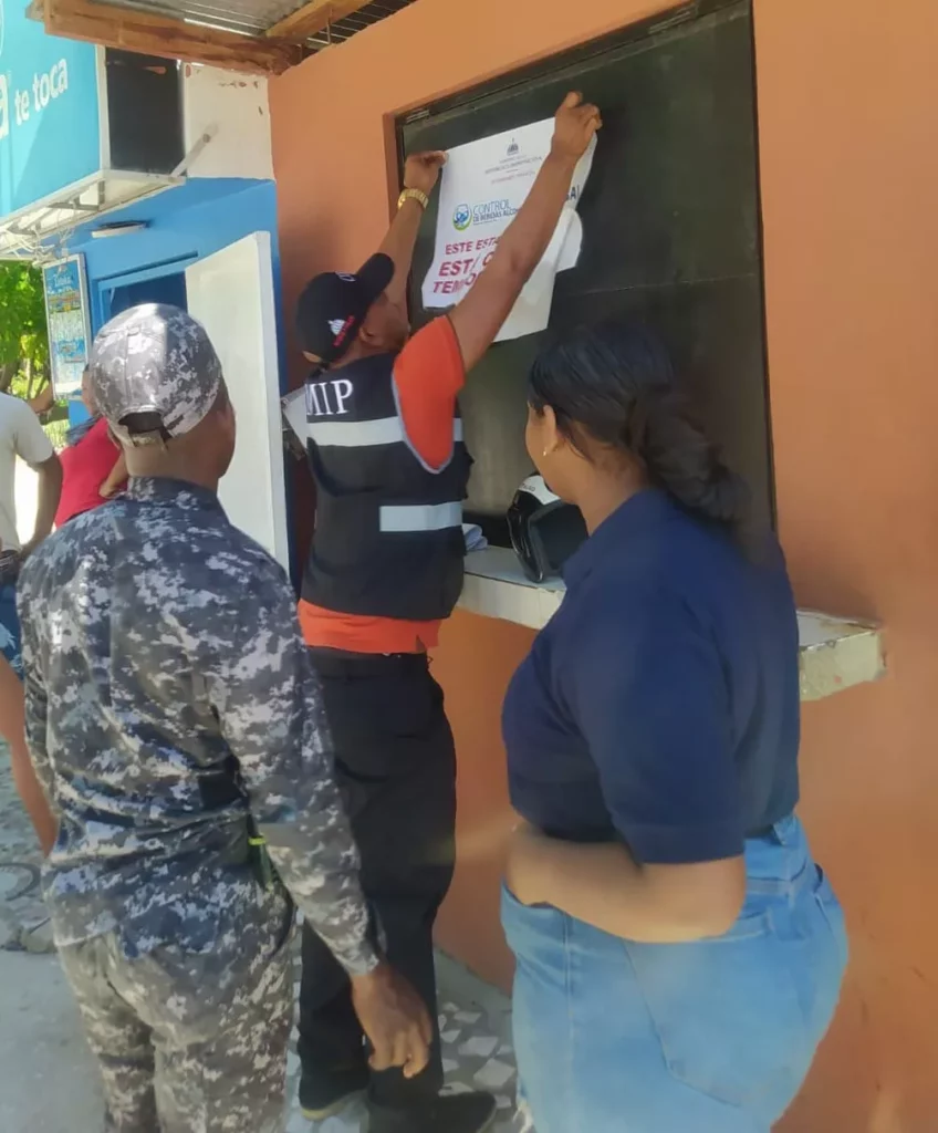 En otra intervención, miembros policiales, junto a la Dirección de Control de Bebidas Alcohólicas (COBA) y representantes del Ministerio Público, procedieron a cerrar de manera temporal dos centros de bebidas alcohólicas en el sector El Tanque, del municipio de Neyba, provincia Bahoruco.