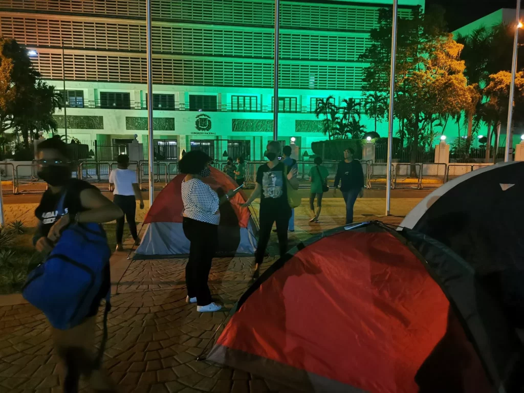 En la noche del lunes, las feministas mudaron su campamento desde el Palacio Nacional, sede del Ejecutivo, a las afueras del Congreso Nacional, donde este martes se inicia el debate sobre el Código Penal, en el que se abordará la cuestión del aborto.