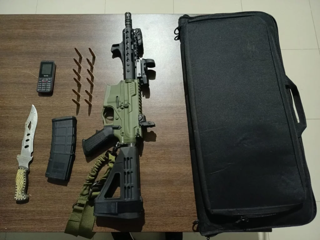 Durante la operación, se descubrió un fusil marca Conny Hybrid, cuya numeración resultó ilegible, dentro de un bulto encontrado en la sala de la residencia. El arma estaba cargada con un cargador plástico y contenía 12 cápsulas. Además del fusil, se incautaron una motocicleta Gato CG-150, color rojo, sin documentos, reportada como robada, un cuchillo tipo Rambo de aproximadamente seis pulgadas de largo, y un teléfono celular.
