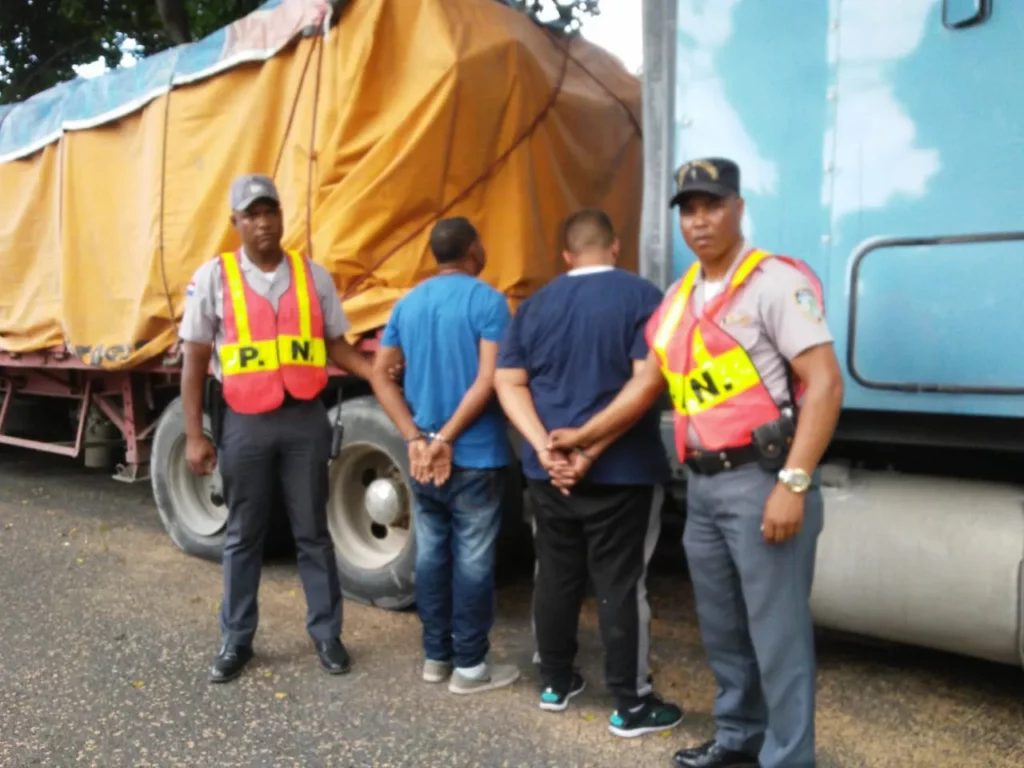 El reporte indica que ambos hombres fueron detenidos mediante un operativo realizado por miembros de nuestra Policía Nacional en la avenida Monumental con carretera Duarte Vieja, donde Estévez Ledesma y Diloné García conducían la patana marca Freightliner, color azul, placa No.L373864, ficha T129, asignada al Sindicato de Transporte de Furgones y Cargas (Sitrafucabochi).