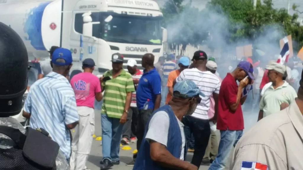 SANTO DOMINGO.-Agentes de la Policía Nacional y del Ejército lanzaron esta mañana bombas lacrimógenas contra decenas de antiguos trabajadores portuarios que esta mañana ocuparon la terminal del puerto de Haina en reclamo del pago de prestaciones laborales.