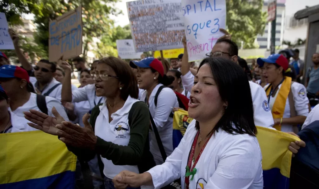 CARACAS, VENEZUELA.-El Gobierno venezolano impidió ayer el paso de una marcha de gremios de la salud que pretendían llegar al palacio presidencial de Miraflores en Caracas para denunciar el deterioro de las condiciones de trabajo y exigir mejoras salariales, en el marco de un conflicto laboral que se ha extendido por 53 días.
