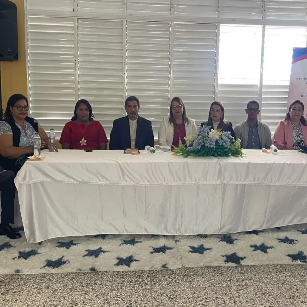 Además, por el teniente coronel José Manuel Lluberes Medina, supervisor titular Distrito Educativo 03-03, de la Policía Escolar, Sonia Margarita Mateo, técnica encargada del Nivel de Secundario, Cristóbal Herrera, técnico enlace de la Dirección de Educación, Adalgisa Presinal, coordinadora general de la Semana Cultural y Deivi Feliz, presidente del Consejo Estudiantil.