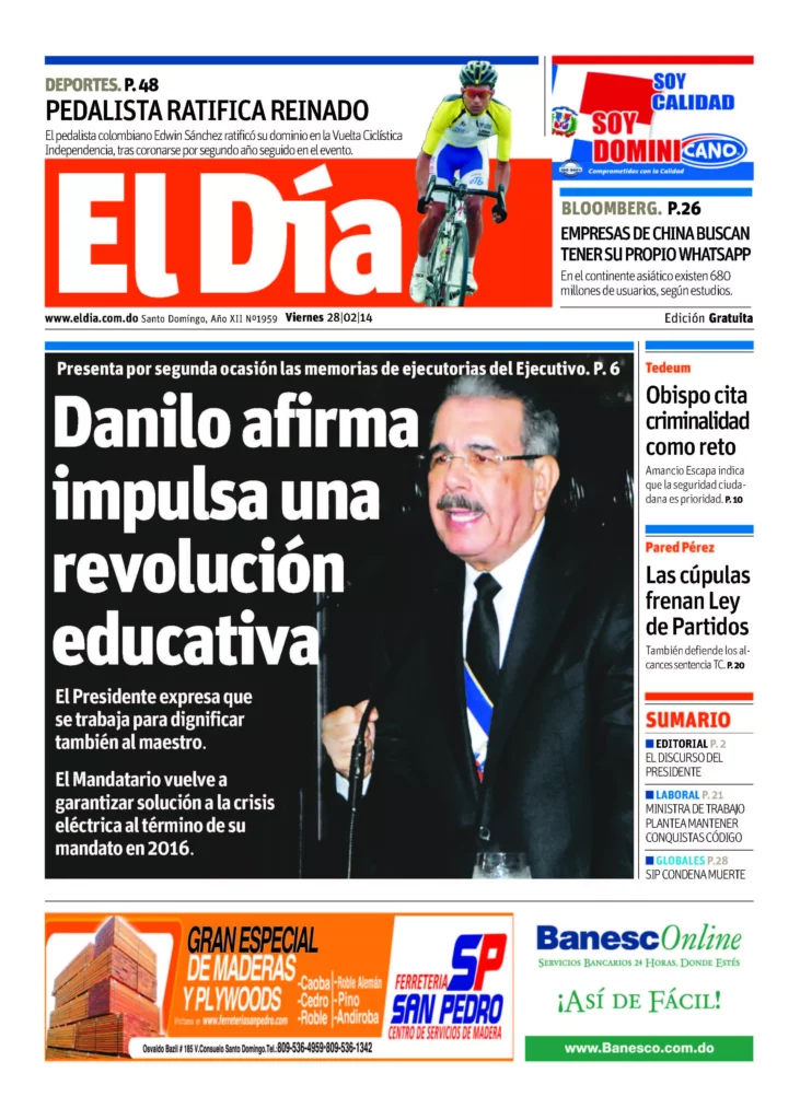 Edición Impresa Por El Día Digital Publicado: 28.02.2014 Tiempo de lectura: 0 m Compartir: Facebook Icon Twitter Icon Threads Icon Linkedin Icon WhatsApp Icon Telegram Icon Etiquetas El Día Digital Facebook Twitter Sitio-Web Periódico independiente.