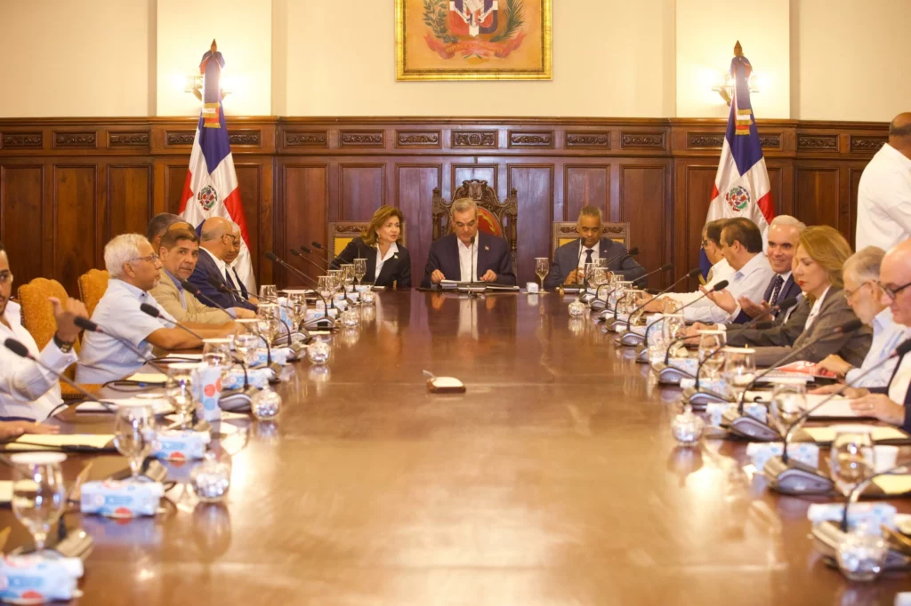 Santo Domingo. – El presidente Luis Abinader junto a la vicepresidenta Raquel Peña, encabezó este lunes un Consejo de Gobierno en el Palacio Nacional, donde se abordaron temas relacionados al crecimiento de la economía dominicana, la Jornada Nacional contra el Dengue, Burocracia Cero, y seguridad alimentaria.