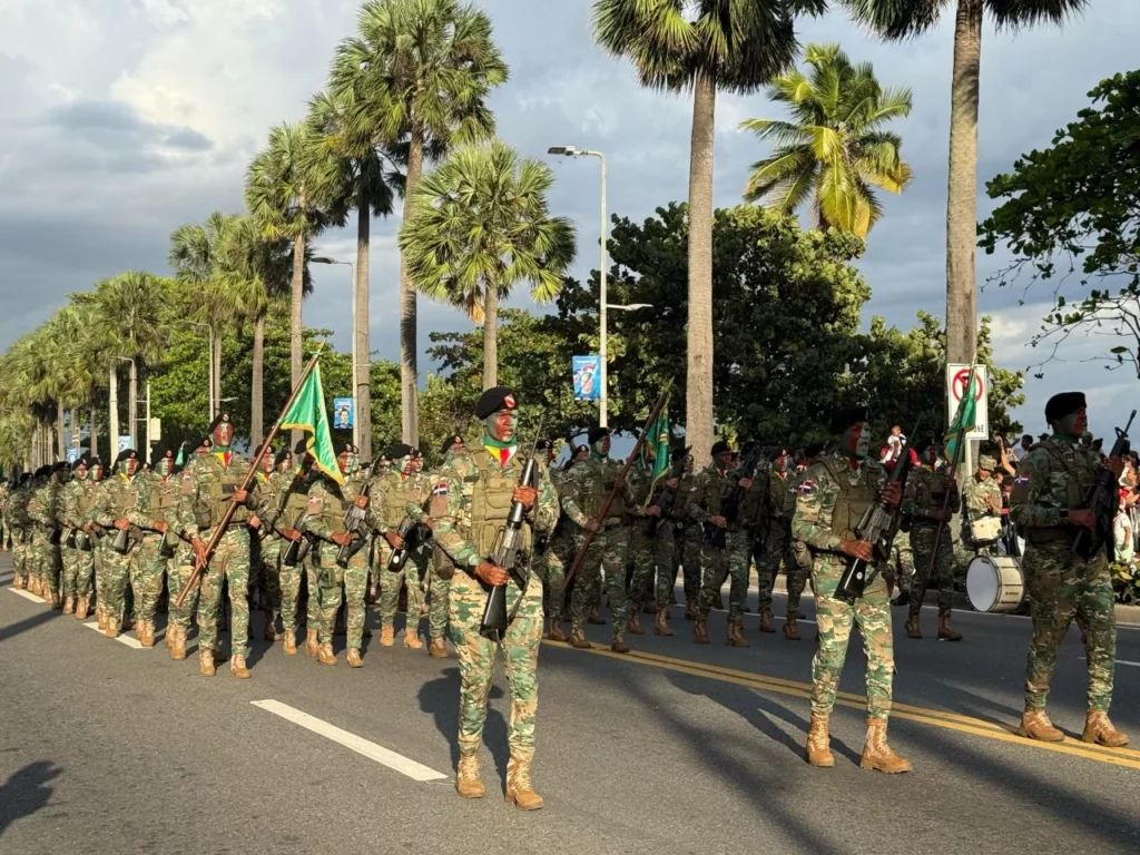 El acto inició con los honores militares correspondientes a la investidura del mandatario. Luego, el comandante de la División Conjunta Independencia 2025, mayor general Miguel Á. Rubio Báez, solicitó el permiso para dar inicio al desfile, en el cual participan contingentes del Ejército, la Armada, la Fuerza Aérea y la Policía Nacional.