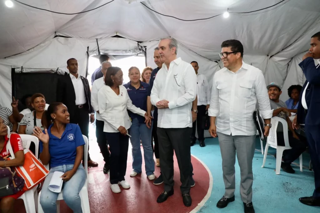 SANNTO DOMINGO.- El presidente Luis Abinader encabezó este viernes la cuarta jornada del operativo médico “Más Salud y Bienestar”, realizada en el Centro Educativo San Vicente de Paul, ubicado en el sector de Los Mina, iniciativa organizada por el Ministerio de Salud Pública en coordinación con el Ayuntamiento de Santo Domingo Este en el sector de .