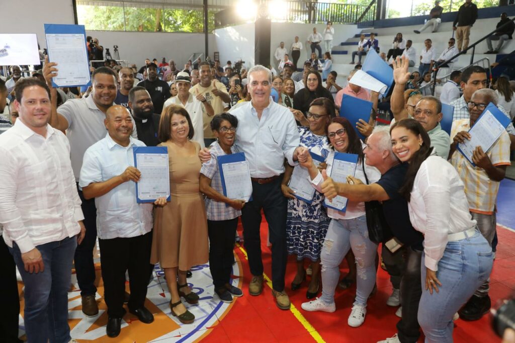 Santo Domingo.- El presidente Luis Abinader entregó este viernes 551 títulos de propiedad en el proyecto Lotes y Servicios de Sabana Perdida, Santo Domingo Norte, a más de 500 familias quienes por más de 40 años estuvieron sin el documento.