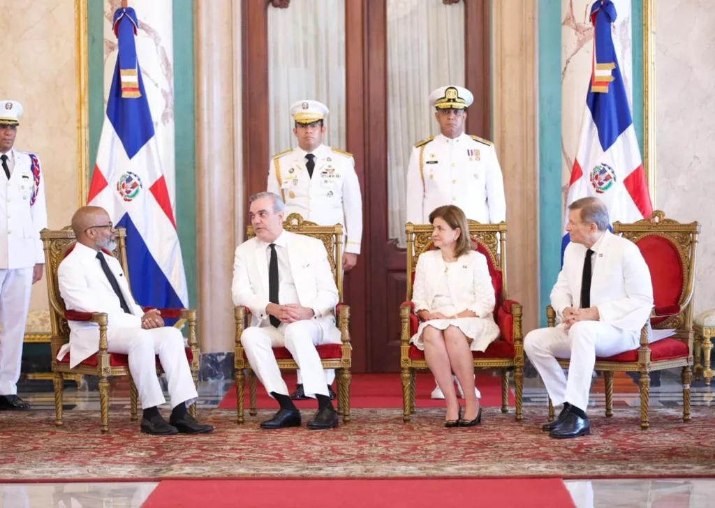 Santo Domingo. – El presidente Luis Abinader, junto a la vicepresidenta Raquel Peña y el ministro de Relaciones Exteriores, Roberto Álvarez, recibió este martes las cartas credenciales de seis nuevos embajadores.