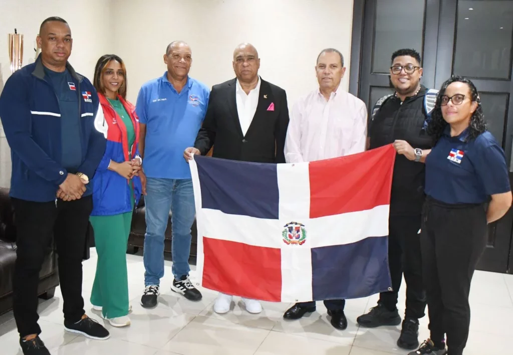 El presidente del COD, ingeniero Garibaldy Bautista, despidió a la avanzada de la delegación que representará al país en los II Juegos Panamericanos Junior que se celebrarán del 9 al 23 de agosto en Asunción, Paraguaya.