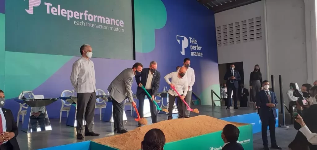 Santo Domingo.- El presidente Luis Abinader dio el primer palazo para la construcción de las nuevas instalaciones del Grupo Teleperformance Global, el cual tiene como la meta tener un total de 6,500 colaboradores al cierre del 2021.