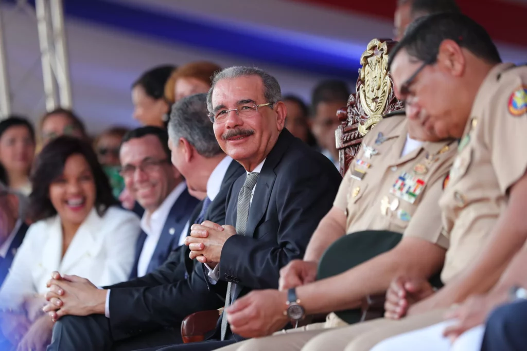 Durante el Desfile Cívico-Militar Policial, el Gobernante estuvo acompañado de los ministros Administrativo de la Presidencia, José Ramón Peralta; de Defensa, teniente general Rubén Paulino Sem; de Educación, Andrés Navarro y de Interior y Policía, Carlos Amarante Baret.