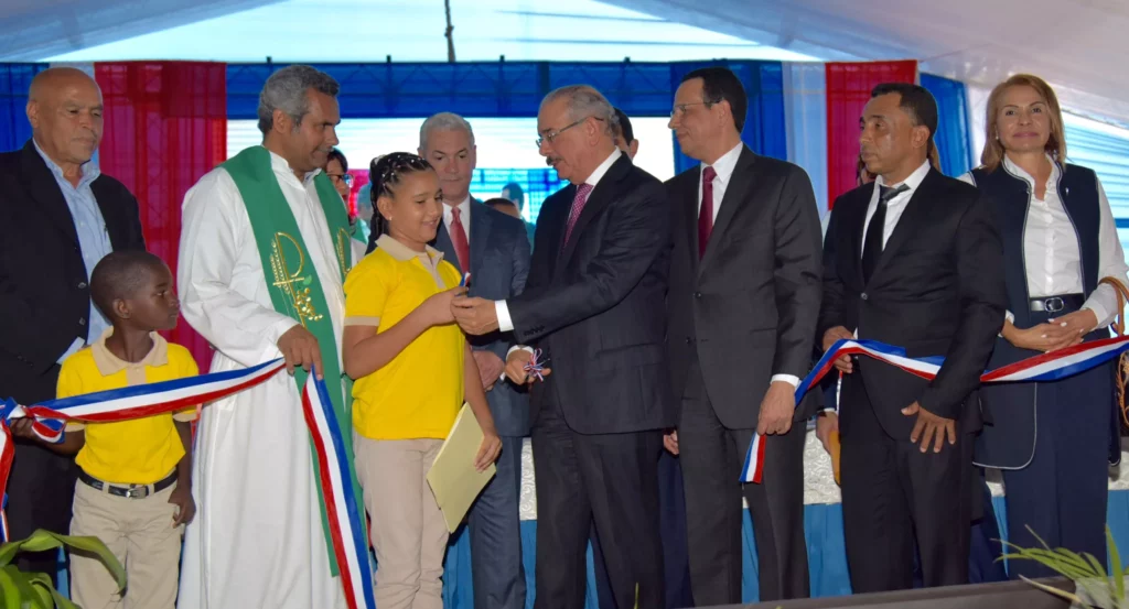 El jefe del Estado, acompañado del ministro de Educación, Antonio Peña Mirabal, entregó el Centro Educativo Francisco Antonio Medina y el Centro Educativo Cruz de Cabrera Arriba, ambos del nivel Primario, así como los liceos secundarios María T. Rivas de Riverón y EtanislaoLiberato (Tavito).