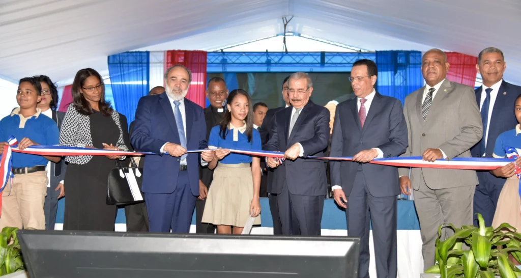 PEDRO BRAND.– El presidente Danilo Medina entregó dos planteles escolares en este municipio, que sumarán 34 nuevas aulas a la modalidad de tanda extendida.
