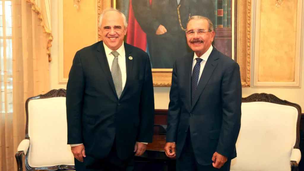 SANTO DOMINGO.-El presidente Danilo Medina recibió en su despacho del Palacio Nacional al expresidente de Colombia, Ernesto Samper, secretario general de la Unión de Naciones Suramericanas (UNASUR).